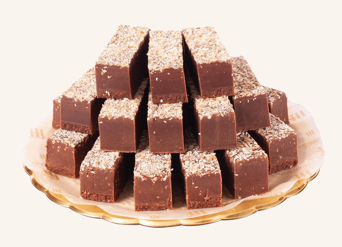 Our original dairy-free recipe, this fudge is made with coconut milk, creamed coconut and pure cocoa, with a generous sprinkle of hand-roasted desiccated coconut. It has such a delicious dark chocolate flavour, and yet creamy consistency, we'd bet you'd never guess it's dairy-free.